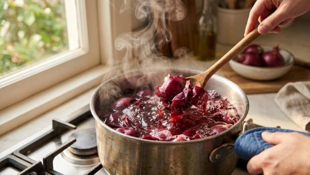 - Pro Tip: If using onion skins, use as many as possible for a richer, deeper red.